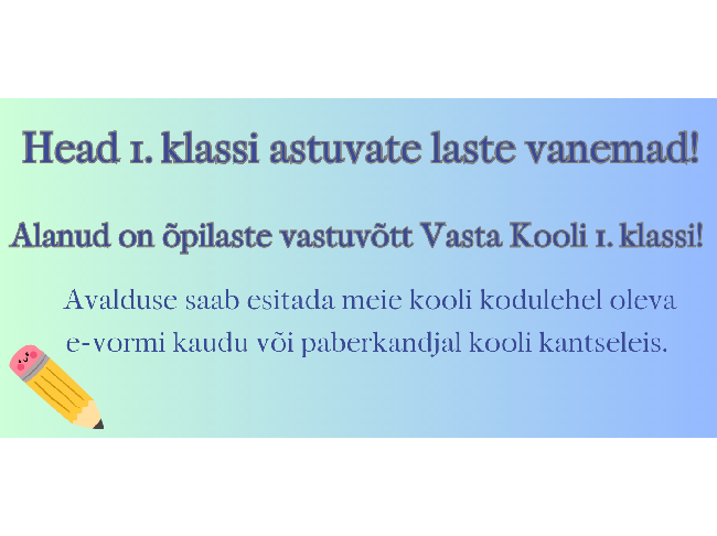 Alanud on õpilaste vastuvõtt Vasta Kooli 1.klassi