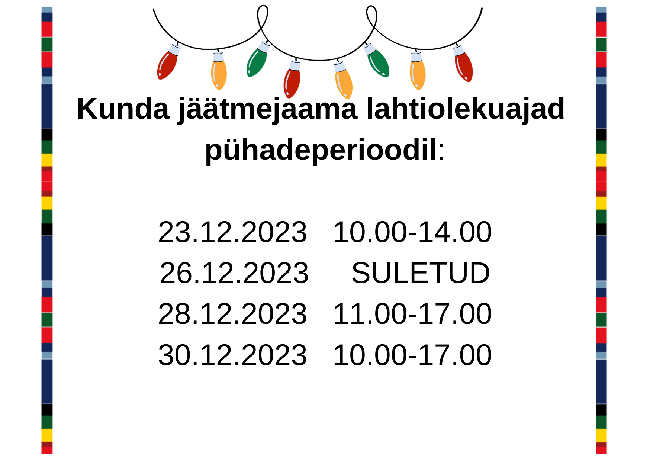 Kunda jäätmejaama lahtiolekuajad pühadeperioodil
